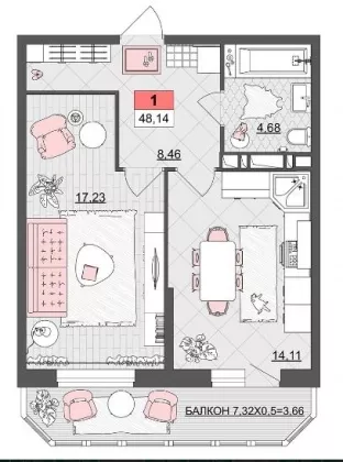 | Площадь, кв.м. | 48.14 |