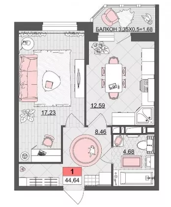 | Площадь, кв.м. | 44.64 |