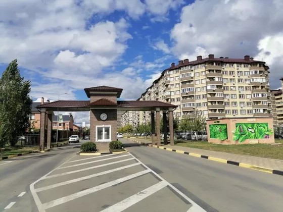 На территории уложена красивая тротуарная плитка, всё чисто и аккуратно. При въезде в жилищный комплекс арка с часами, а чуть правее зеленая аллея со скамейками для отдыха, очень красиво. На территории жилищного комплекса школа и детский сад. Рядом с комплексом остановка общественного транспорта. Быстрый выезд к морю!!!