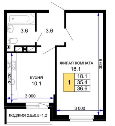 | Площадь, кв.м. | 36.6 |