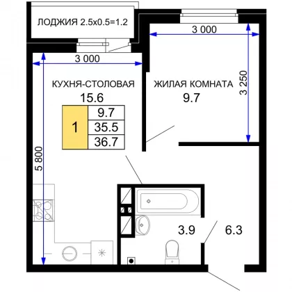 Продается однокомнатная новостройка, 36.37 кв.м., 6/16 эт