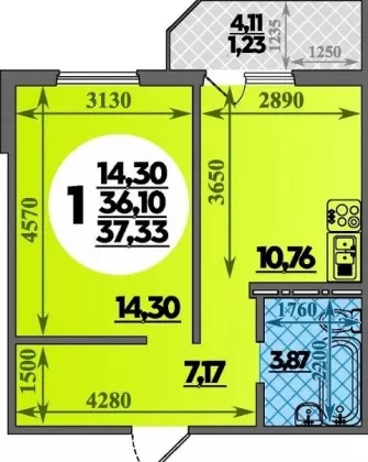 Продается однокомнатная новостройка, 37.33 кв.м., 4/16 эт