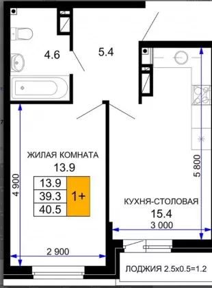 Продается однокомнатная новостройка, 40.5 кв.м., 14/16 эт