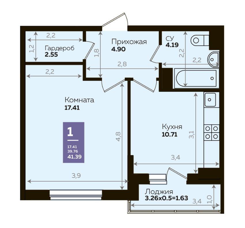 Продается однокомнатная новостройка, 42 кв.м., 8/24 эт
