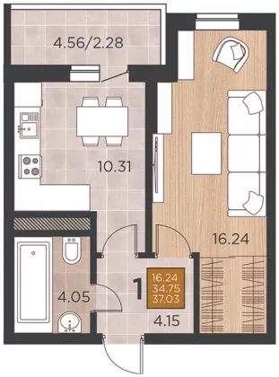 | Комнат в квартире | 1 |