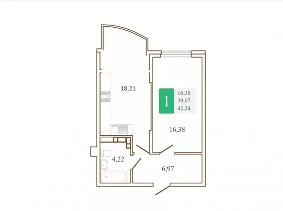 Продается однокомнатная новостройка, 43 кв.м., 8/16 эт