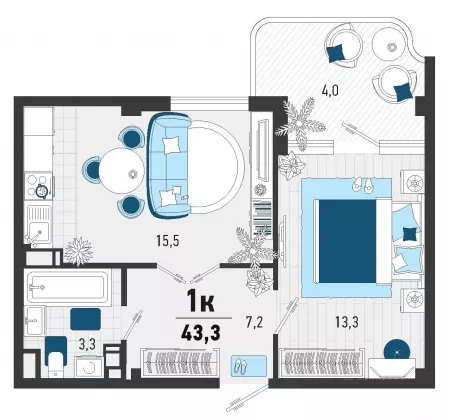 Продается однокомнатная новостройка, 32 кв.м., 2/3 эт