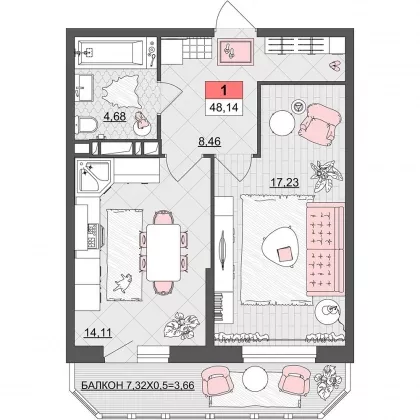 Продается 2-х комн. новостройка, 44 кв.м., 4/19 эт