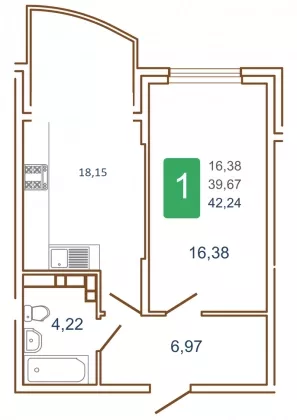 Продается однокомнатная новостройка, 42 кв.м., 4/16 эт