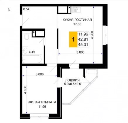 Продается однокомнатная новостройка, 45 кв.м., 10/16 эт