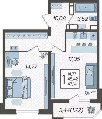 Продается однокомнатная новостройка, 41 кв.м., 7/16 эт