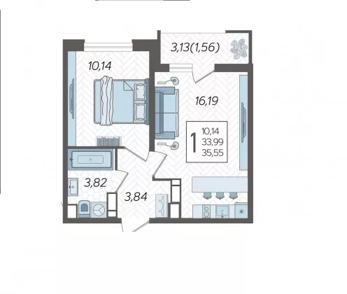 Продается однокомнатная новостройка, 37 кв.м., 8/19 эт