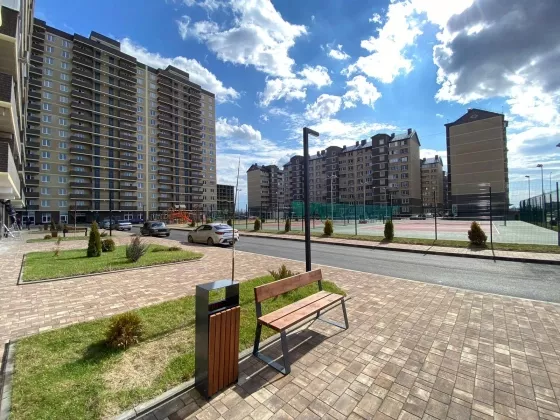Продаётся уютная квартира в новом комплексе в спальном районе города, современная планировка с большими кухнями , красивая аллея ландшафтным дизайнером,