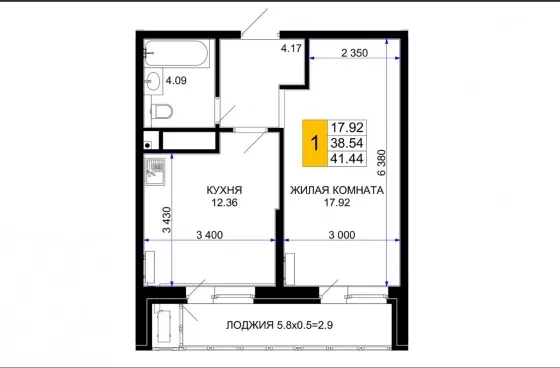 Продается однокомнатная новостройка, 41 кв.м., 7/16 эт