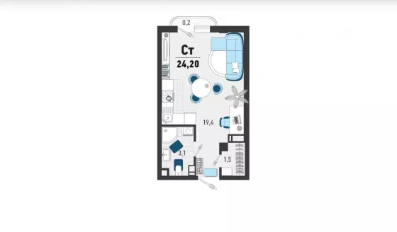 Продается однокомнатная новостройка, 26 кв.м., 3/3 эт