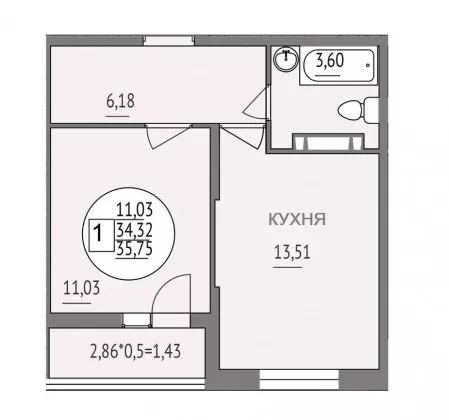 Продается однокомнатная новостройка, 41 кв.м., 6/16 эт