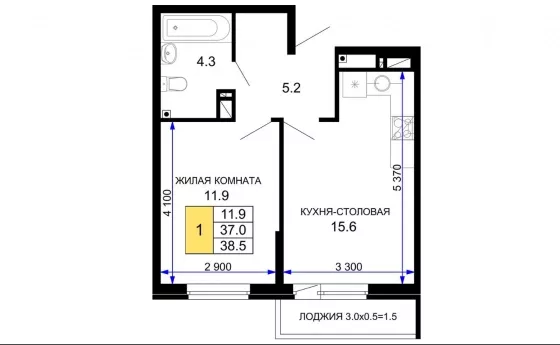Продается однокомнатная новостройка, 41 кв.м., 7/16 эт