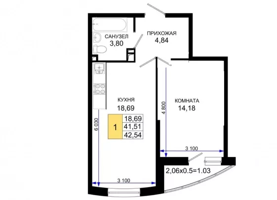 Продается однокомнатная новостройка, 41 кв.м., 10/19 эт