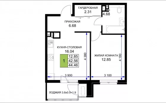 Продается однокомнатная новостройка, 42 кв.м., 4/16 эт