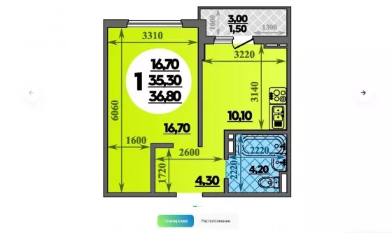 Продается однокомнатная новостройка, 41 кв.м., 7/16 эт