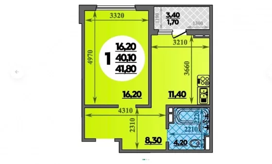 Продается однокомнатная новостройка, 41 кв.м., 6/16 эт