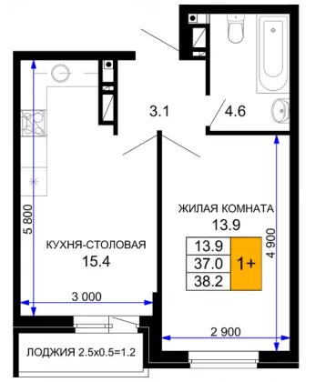 Продается однокомнатная новостройка, 41 кв.м., 5/16 эт