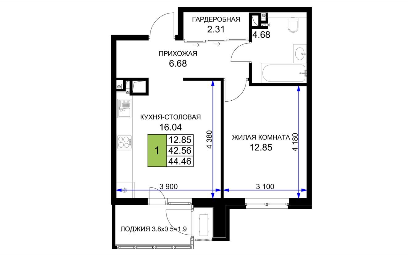 Продается однокомнатная новостройка, 46 кв.м., 8/16 эт