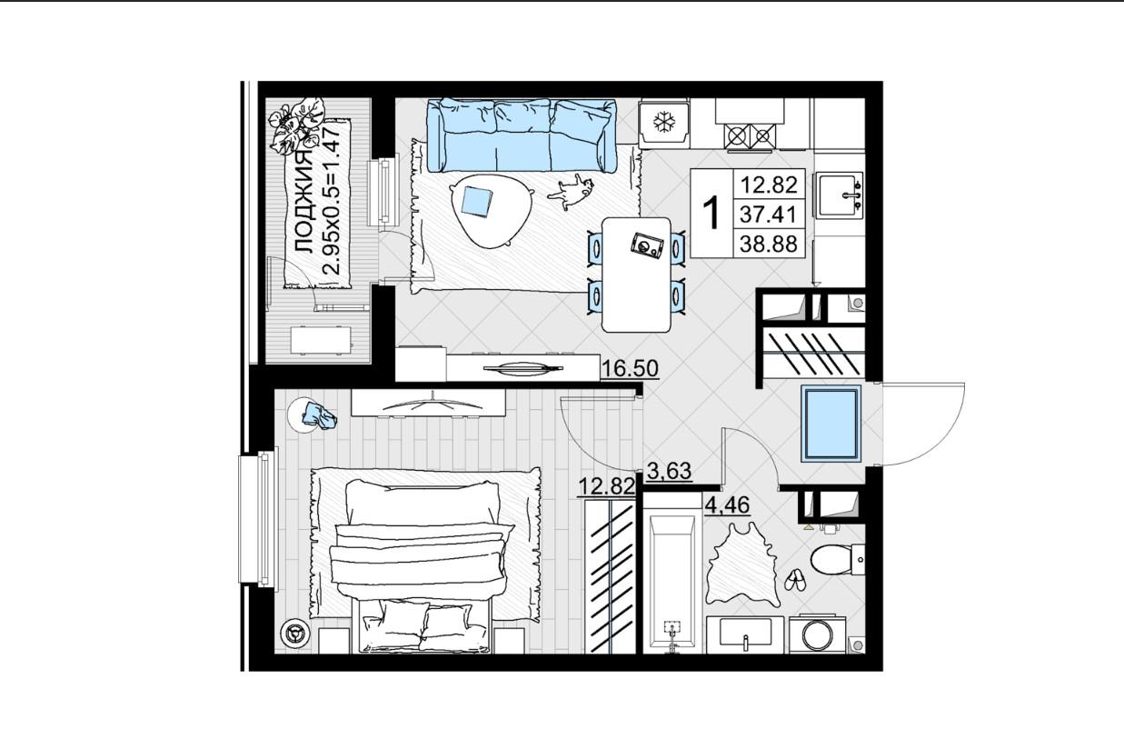 Продается однокомнатная новостройка, 41 кв.м., 7/18 эт