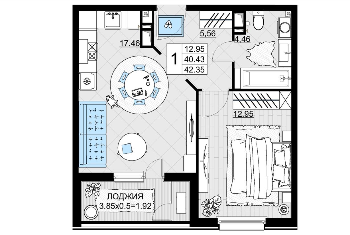Продается однокомнатная новостройка, 42 кв.м., 10/18 эт