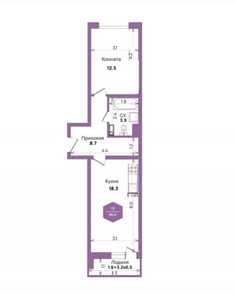 Продается однокомнатная новостройка, 46 кв.м., 5/21 эт