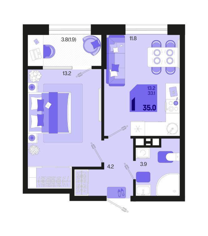 Продается однокомнатная новостройка, 41 кв.м., 5/18 эт