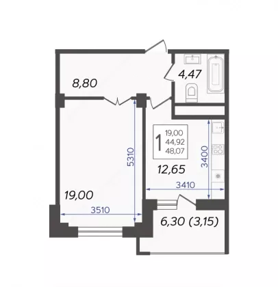 Продается однокомнатная новостройка, 51 кв.м., 12/16 эт