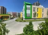 колясочная зона и помывочная для лап собачек .так же есть площадки для собак. продуманный ландшафтный красочные детские площадки и, много зелени и свежего воздуха.