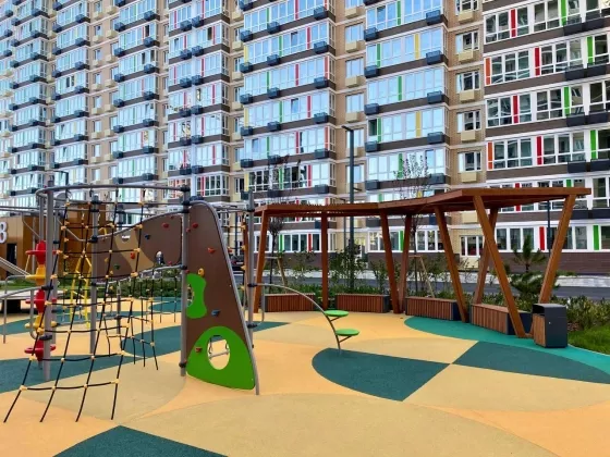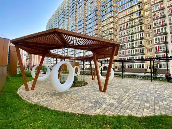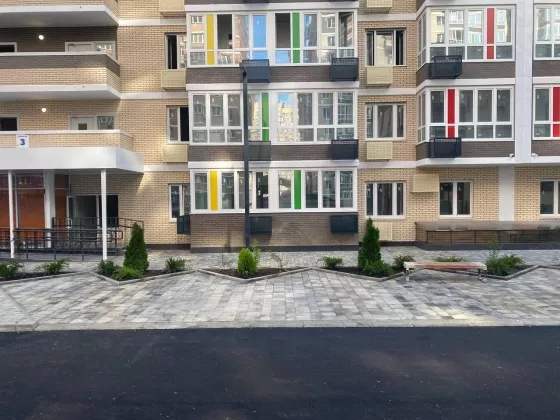 Перед домом 2 садика и 1 школа!!! Так же есть фитнес центр с открытым бассейном ,очень зелёная аллея. очень зелёный район и тихий район города