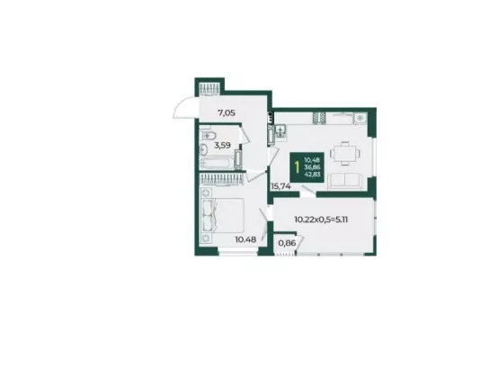 Продается однокомнатная новостройка, 44 кв.м., 6/21 эт