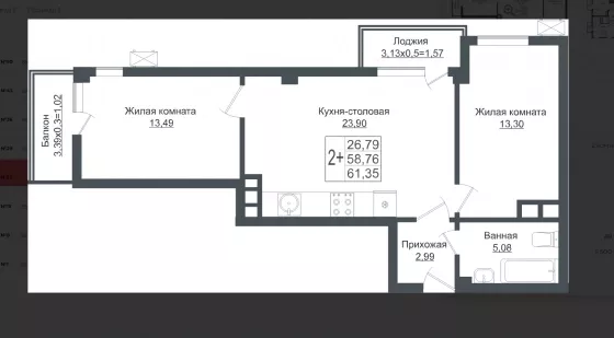 Продается 2-х комн. новостройка, 62 кв.м., 6/9 эт