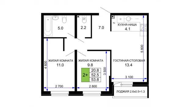 Продается 2-х комн. новостройка, 58 кв.м., 7/16 эт