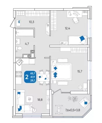 Продается 2-х комн. новостройка, 70 кв.м., 24/24 эт