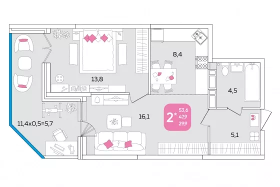 Продается 2-х комн. новостройка, 59.3 кв.м., 13/21 эт