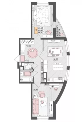 Продается 2-х комн. новостройка, 66.42 кв.м., 11/19 эт