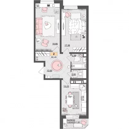 | Комнат в квартире | 2 |