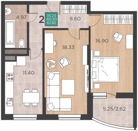 Продается 2-х комн. новостройка, 64 кв.м., 5/16 эт