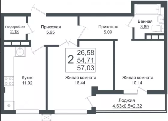 Продается 2-х комн. новостройка, 52 кв.м., 4/9 эт