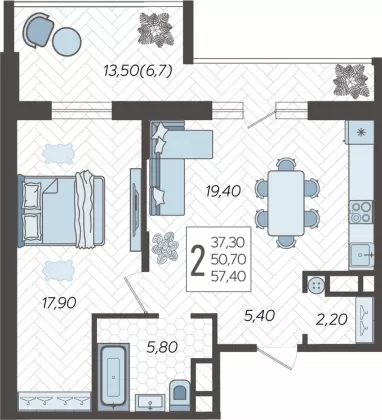| Площадь, кв.м. | 57 |