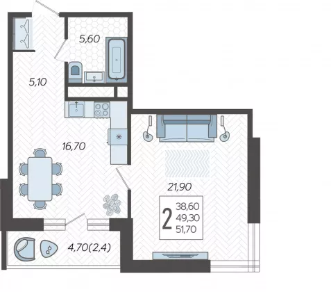 Продается 2-х комн. новостройка, 51 кв.м., 7/16 эт