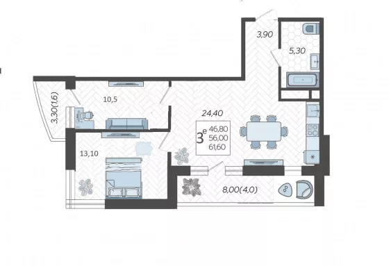 Продается 2-х комн. новостройка, 62 кв.м., 11/19 эт