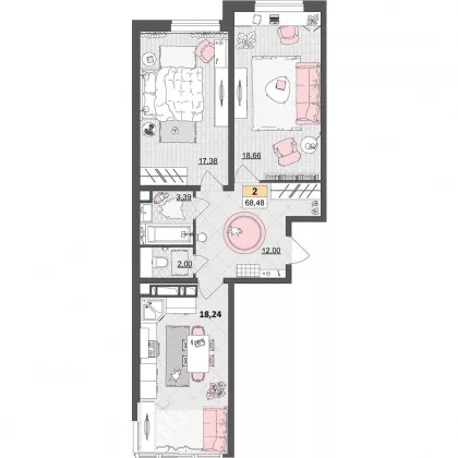 Продается 2-х комн. новостройка, 68 кв.м., 5/19 эт