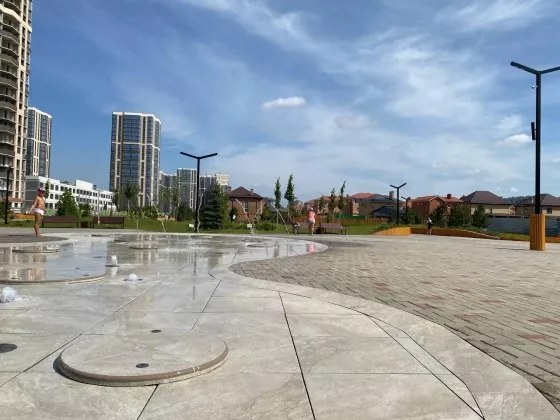 Вдоль дома огромная алея 1,5 километра и фонтаны