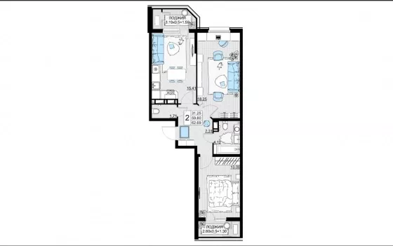 | Комнат в квартире | 2 |