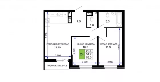 Продается 2-х комн. новостройка, 56 кв.м., 10/16 эт